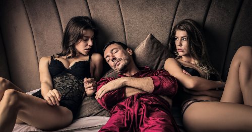 - Поймите, на что вам хватит сил, а на что нет. Конечно же, мужчины чаще всего хотят секс с двумя знойными девушками. Им нравится представлять, как, сначала, они просто наблюдают за поцелуями и прелюдиями двух красоток. Потом они манят его пальчиком, и он ублажает то одну, то другую даму. На деле же, не все мы такие секс-гиганты, какими хотим себя видеть. Многие кончают за пять или десять минут, и в этом нет ничего страшного, когда дело касается одной женщины. Но, допустим, одной вы оргазм доставить успели, а другая будет сидеть грустной и неудовлетворенной. Намного лучше будет разделить женщину с другим мужчиной. Во-первых, дама точно останется довольна, потому что сразу двое мужчин будут пытаться сделать ей приятно. Во-вторых, всем мужчинам надо попробовать это чувство - пока вам делают минет, ваш секс-напарник пристраивается к девушке сзади, и она стонет вам в член от удовольствия.